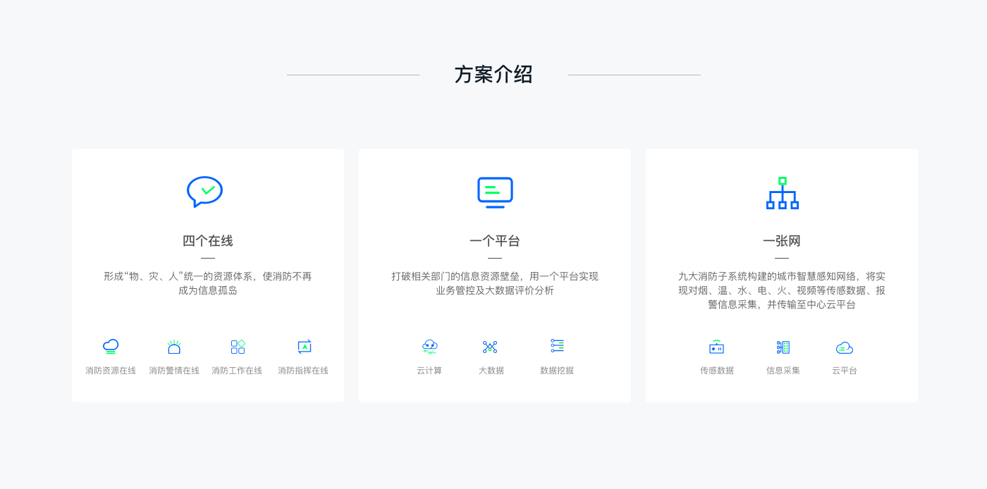 通过对云计算、物联网、大数据、GIS等现代信息技术的综合利用,大力创新消防管理模式,开展智慧防控、作战、执法和管理,最终实现对火灾防控的自动化管理,对灭火救援的智能化管理,对执法工作的系统化管理以及对管理运营的精细化管理